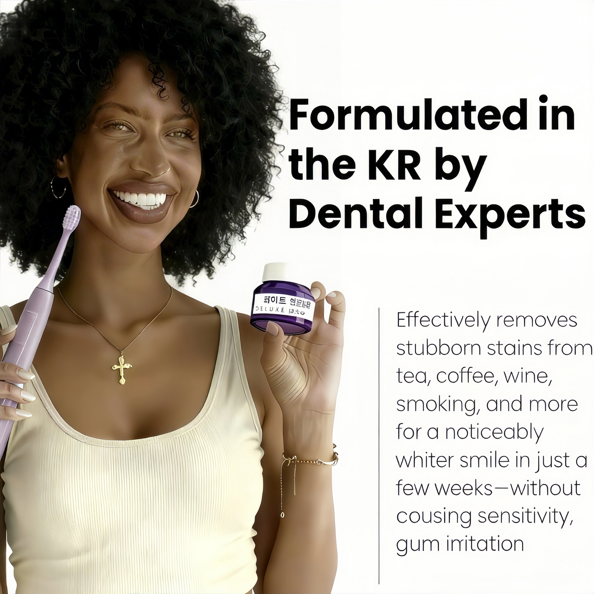 If you have been struggling with yellow teeth like I was, trying various whitening methods without success, the V34 Brightening Powder is the answer you have been searching for. It is not only gentle and highly effective but, through innovative purple color-correcting technology and deep restorative ingredients, it rapidly restores the brightness of your teeth and helps you regain a confident smile.